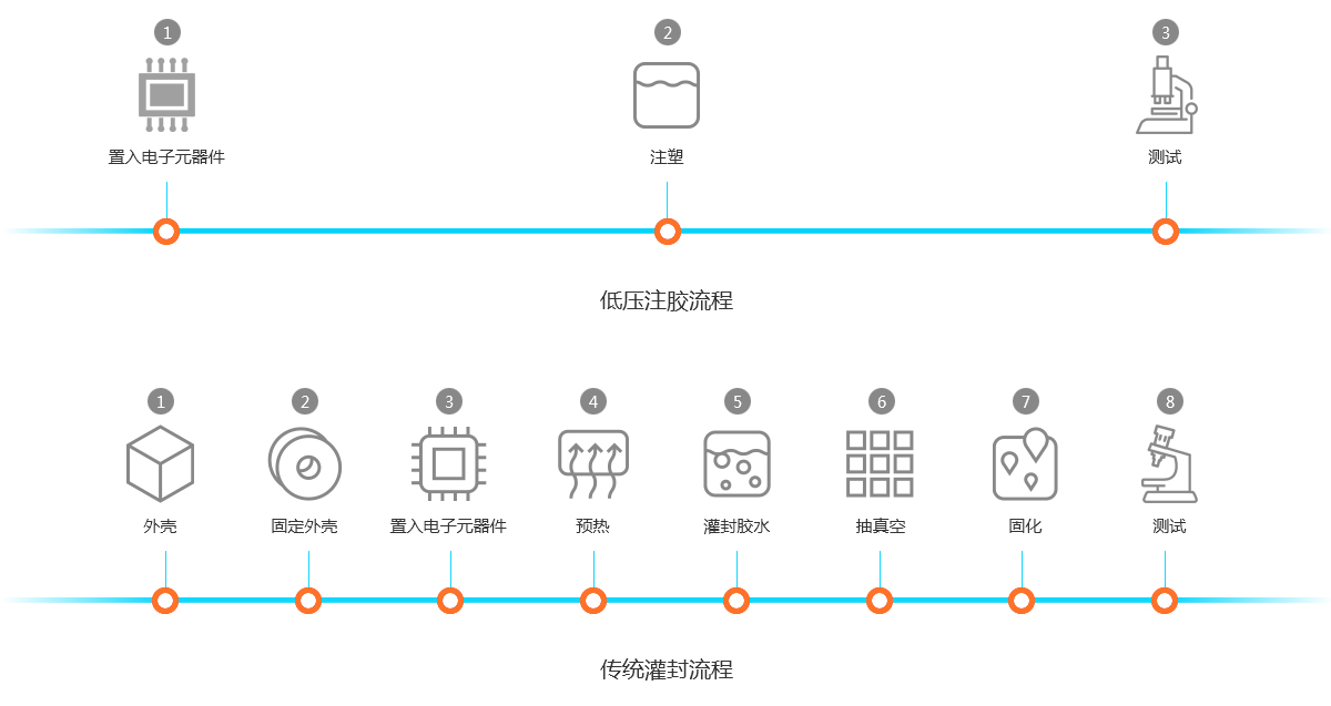 PA熱熔膠低壓注膠成型工(gōng)藝與灌封工藝比較