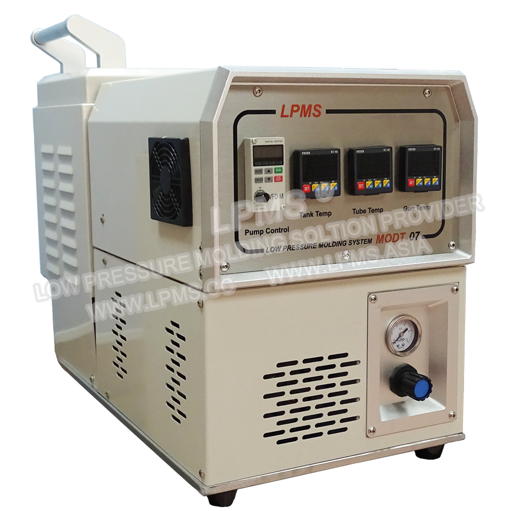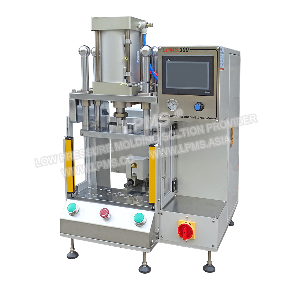 採用氣壓推(tuī)動(dòng)式的熱熔膠低壓注膠機、結構緊湊、故障率低,操作簡單快捷,適合打樣和小批量生產。