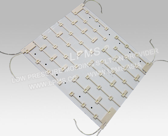 低壓注塑工藝運用於各式LED串(chuàn)燈、LED模組等的防水包封中, 對比傳統灌膠工藝與高(gāo)壓注塑工藝(yì),具有固化周期短、生產(chǎn)效率高、無損電子元器件、不良率低,注(zhù)塑好的產品防(fáng)水(shuǐ)等級高等特點,正被越來越多的LED廠商采用。