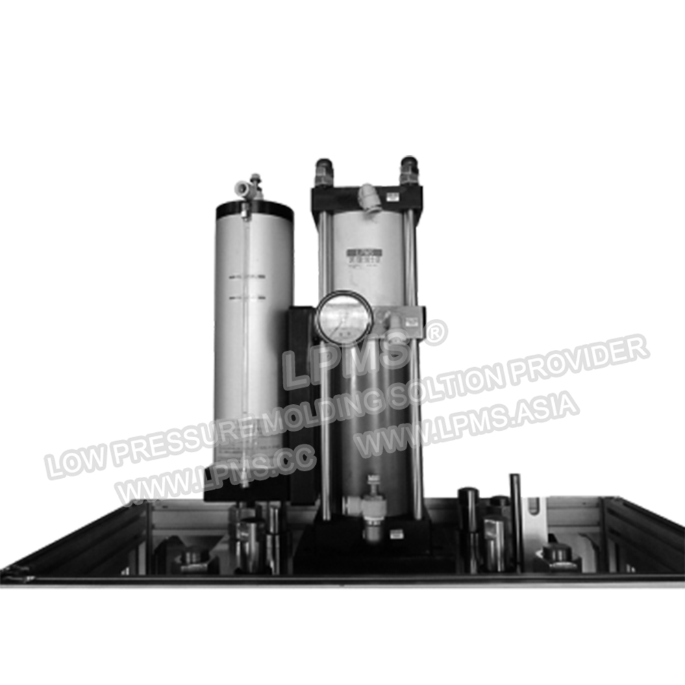 l 合模采用氣液增壓(yā)缸,適合注膠麵積較大(dà)、注膠量大產品的大(dà)批量生產
