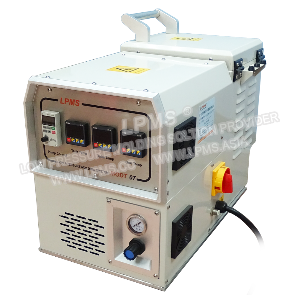 熱熔膠熔膠機是低壓注塑設備的核心部件,有儲膠、輸送膠料、熔化膠料、控(kòng)製膠(jiāo)量(liàng)和注膠壓力等功能,使注(zhù)膠達到穩定的效(xiào)果(guǒ),MODT-07係列和LPMS各種類型的低壓注膠工作台搭配後適用於各式低壓熱熔(róng)膠成型樹脂對產品注(zhù)膠(jiāo)包封,製程壓力低(0-6Mpa),不(bú)會損傷零部件,無化(huà)學反應,成形快速,冷卻即成型,成型後產品具有絕(jué)緣與防水(shuǐ)等性能。