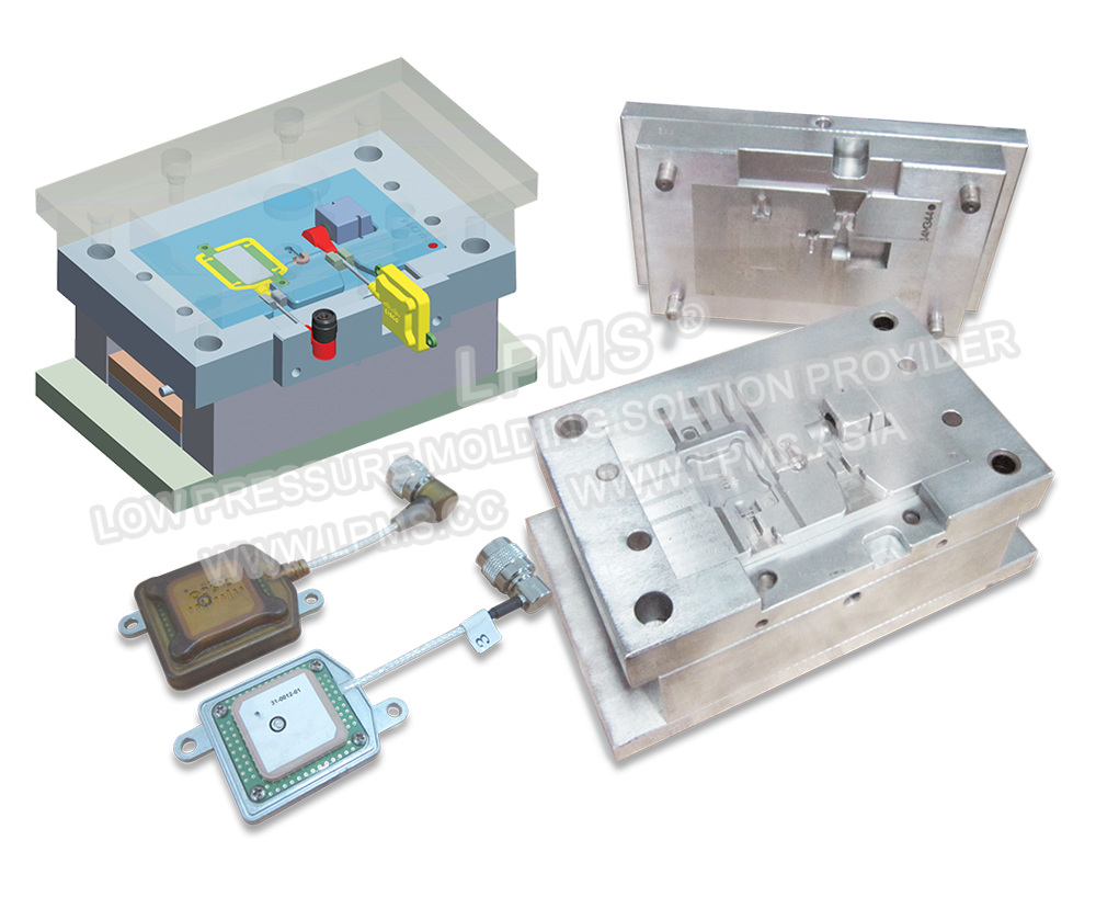 低壓注膠模具可用鋁材或鋼材製成,如果待封裝的(de)元器(qì)件為鋼(gāng)材或硬質材料器件,建議模穴區域使用鋼材製作。