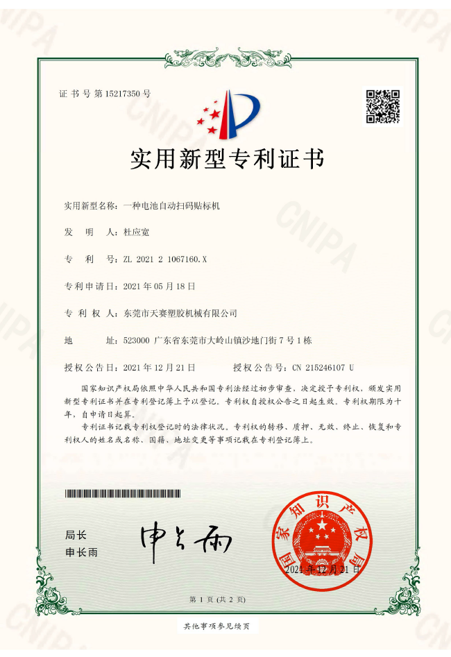 東莞市91免费网站機械有限公司秉持開發創新、質量第一、顧客滿意(yì)、持續(xù)改進的理念,憑借接近20年的電子(zǐ)產(chǎn)品防水封裝保護技術經(jīng)驗的沉澱和不斷開發創新的進取精神,所研發(fā)的技術中已經幾十項有獲得國家專利,產品更得到市(shì)場的一(yī)致好評(píng),公司鞏固了天(tiān)賽在行業內的領先地位。